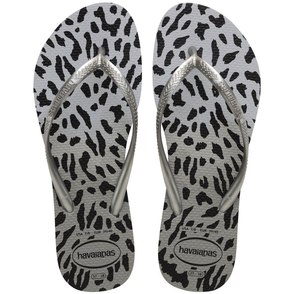 A Havaianas Slim Animals é uma ótima opção para os amantes de animal print. Com sola e tiras finas e delicadas, o chinelo tem várias opções de estampa de oncinha. Uma sandália marcante!