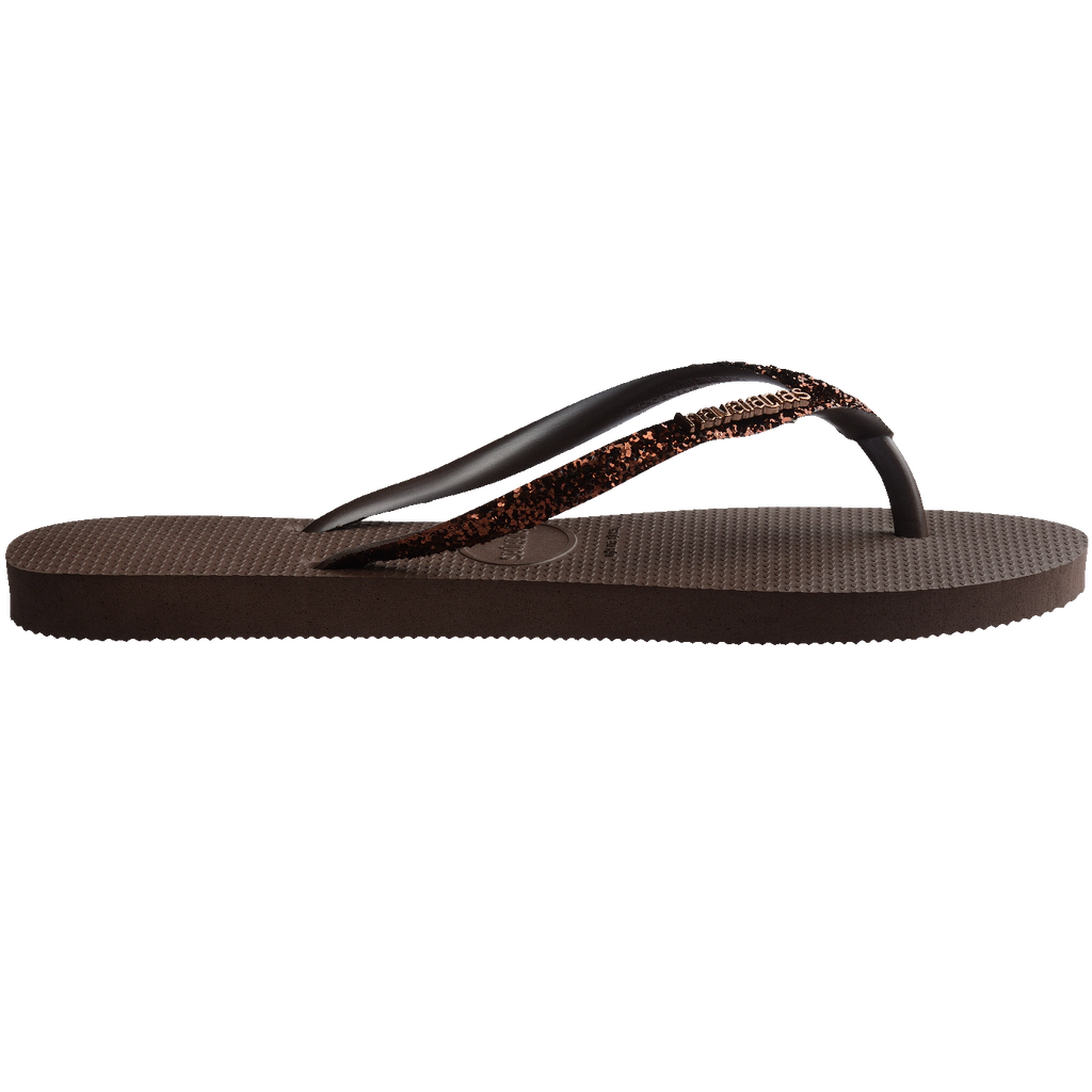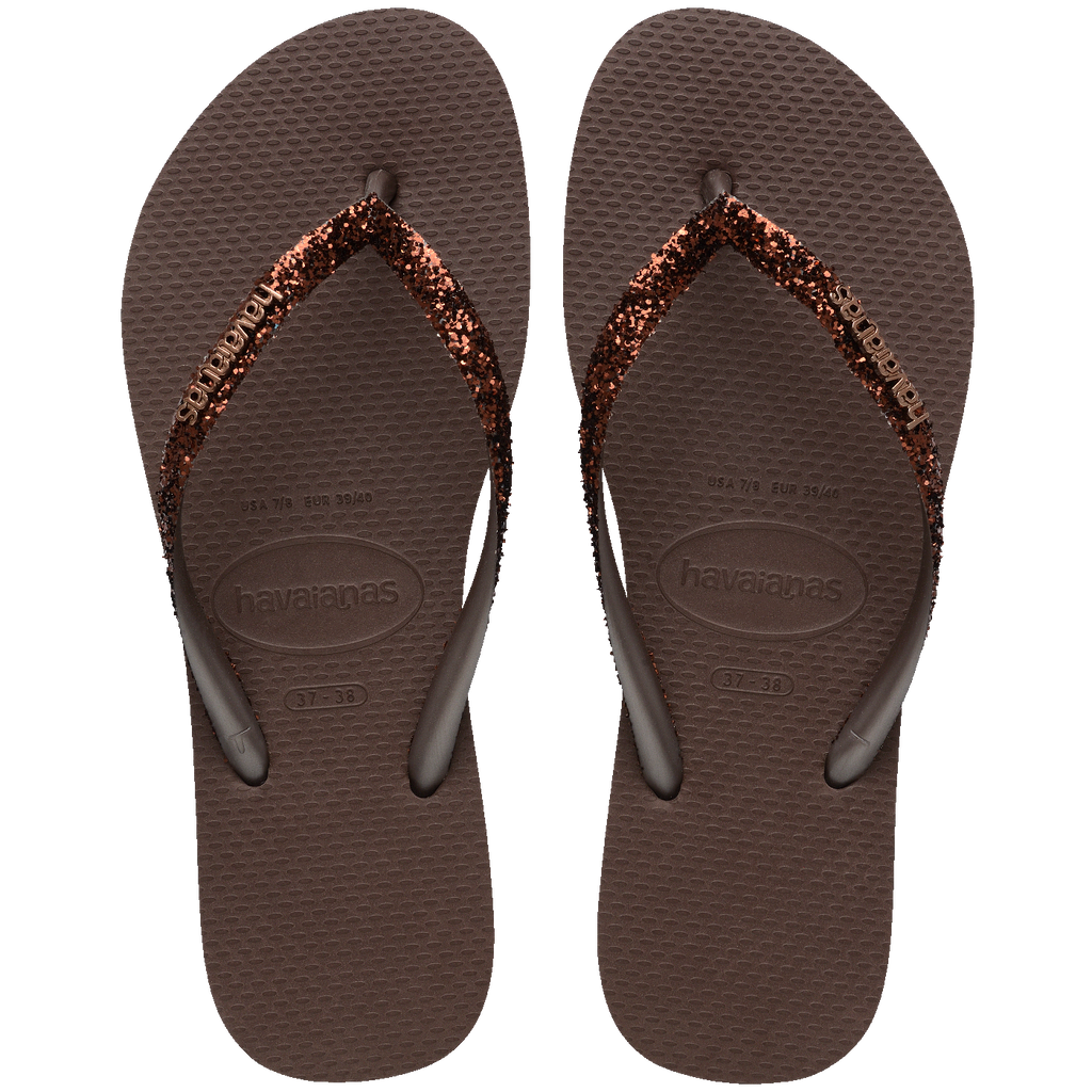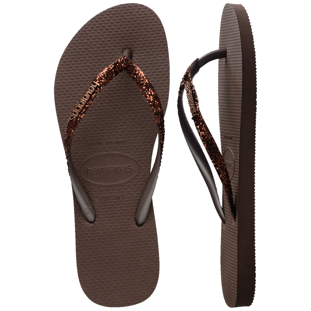 A Havaianas Slim Glitter II tem uma paleta de cores sofisticada e um novo formato do glitter aplicado nas tiras, que reflete a luz de uma maneira mais pura e deixa o modelo ainda mais brilhante.