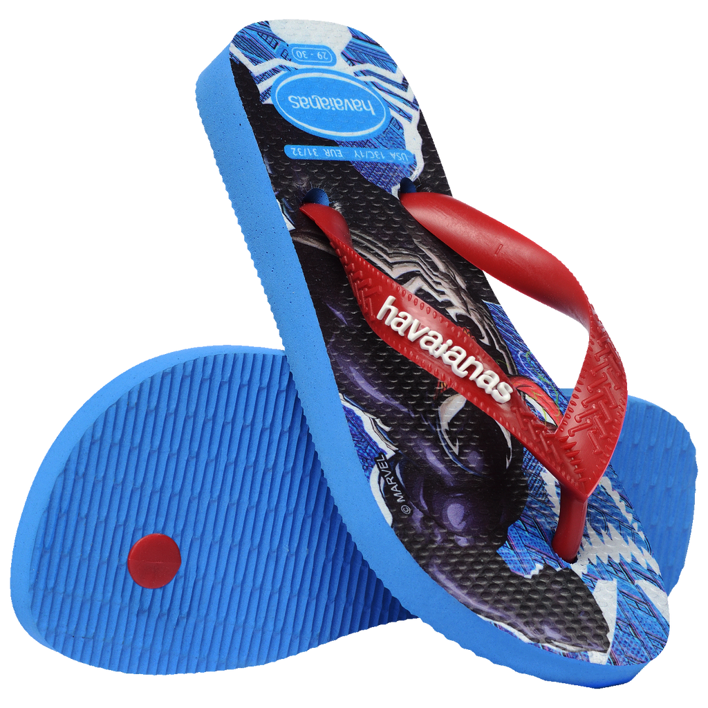 Super-heróis como o Homem-Aranha e o Hulk estampam essas sensacionais Havaianas Kids Top Marvel. A escolha perfeita para crianças que adoram aventuras.