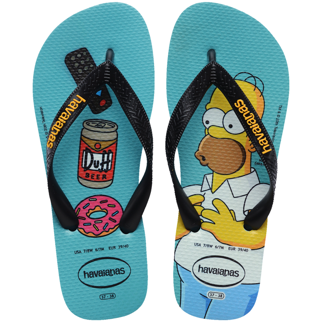 A família mais divertida dos desenhos animados, Os Simpsons, estampa esse modelo de Havaianas Top, trazendo uma dose de bom humor para os seus chinelos.